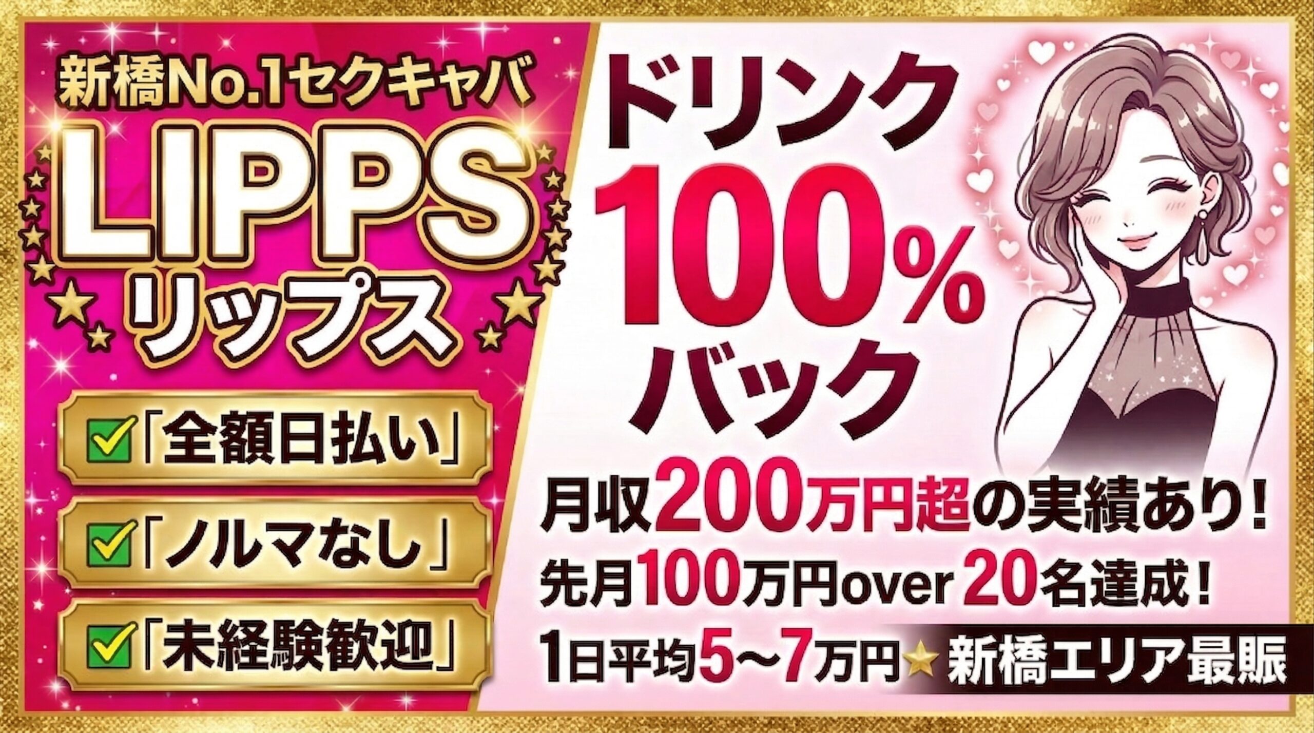 掲載エリアを東京(一部例外あり)に限定しているので質の高いガールズバー求人 、スナック求人、ラウンジ求人、クラブ求人、キャバクラ求人、いちゃキャバ求人、セクキャバ求人など全てを網羅。