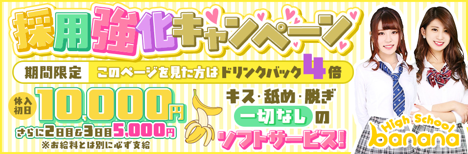新橋いちゃキャバ「ハイスクールbanana」の高収入求人は、今なら入店祝い金【10万円】!!超ライトないちゃキャバ、もちろんキス無し!働きやすい環境が揃ってます!